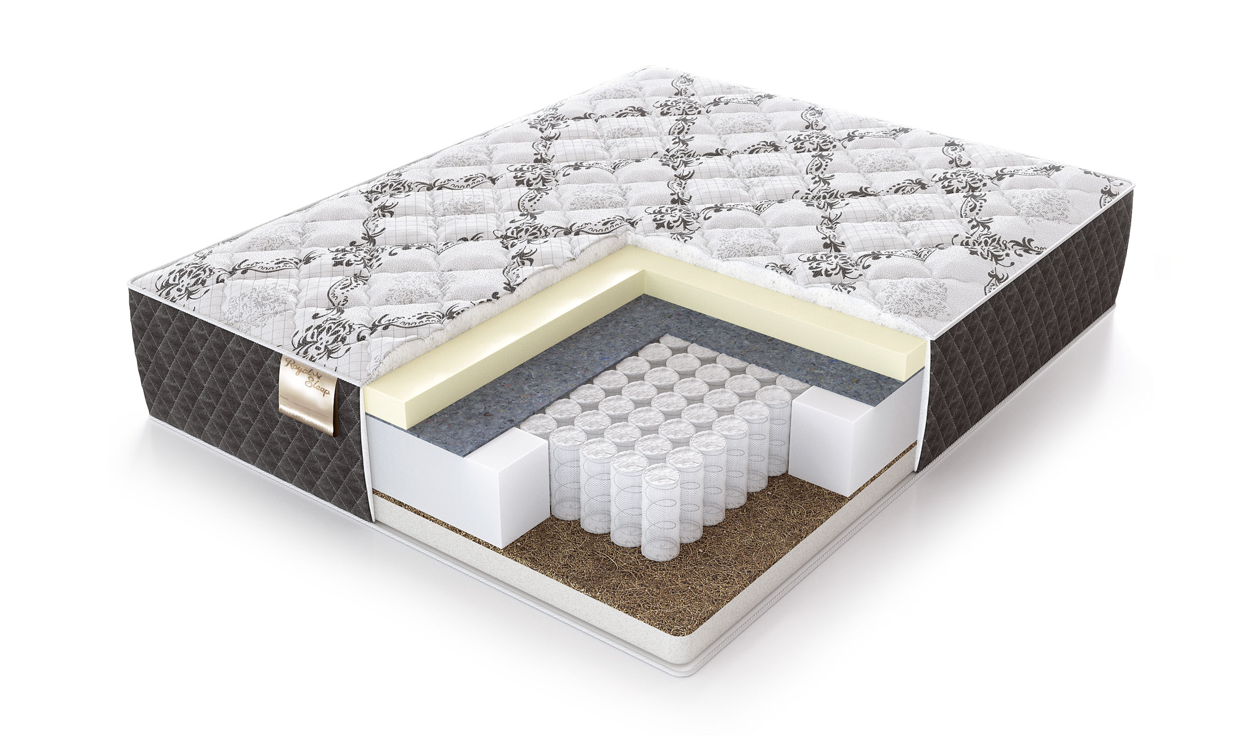 Натуральное кокосовое волокно, пропитанное латексом, придает жесткость матрасу.