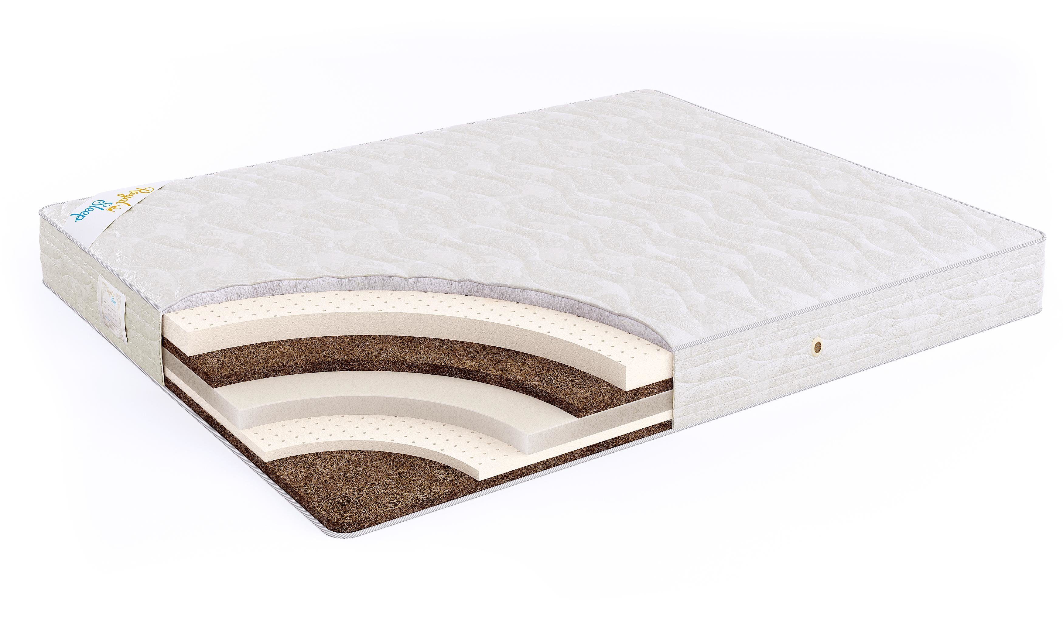 Внешний слой 100% латекса придает ему ощущение мягкости и упругости. Латексированный кокос используется для придания матрасу жесткости.