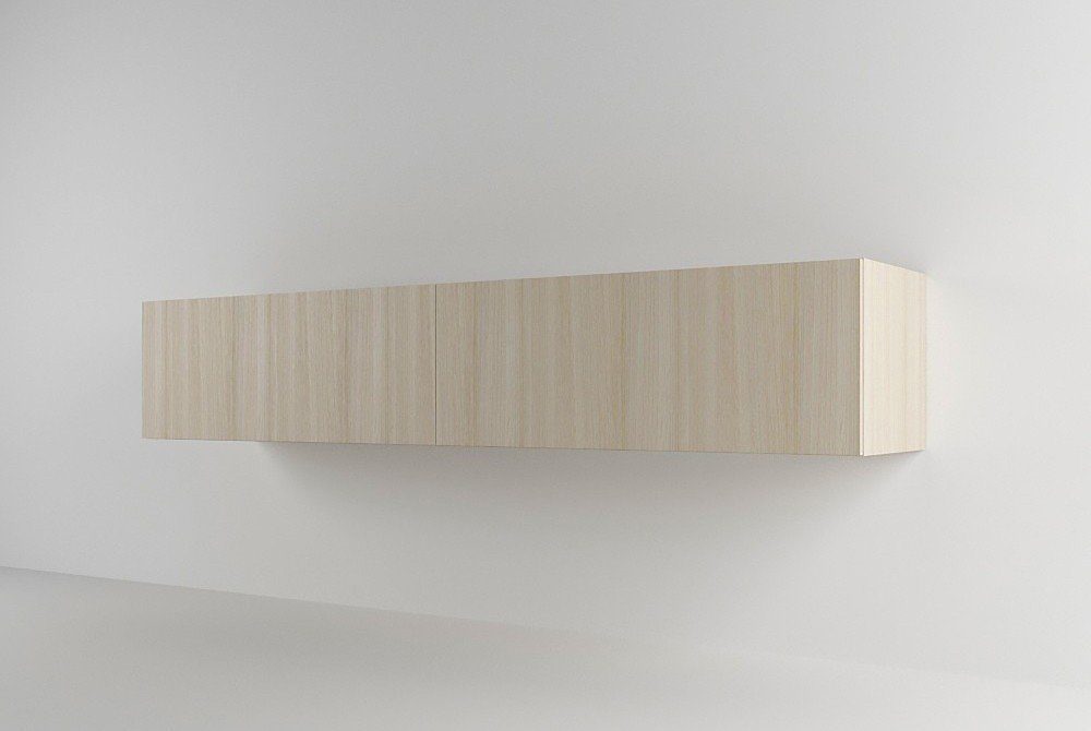 Антресоль выполняется в виде дополнительного шкафа над корпусом кровати, с открывающимися фасадами на лицевой части.