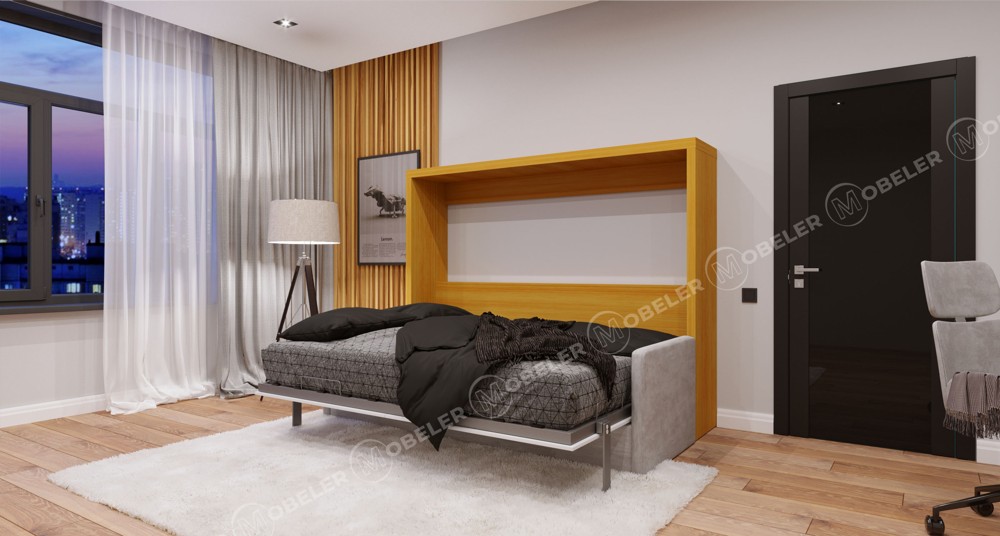 Шкаф кровать горизонтальная двуспальная с диваном-5w "Стандарт"
