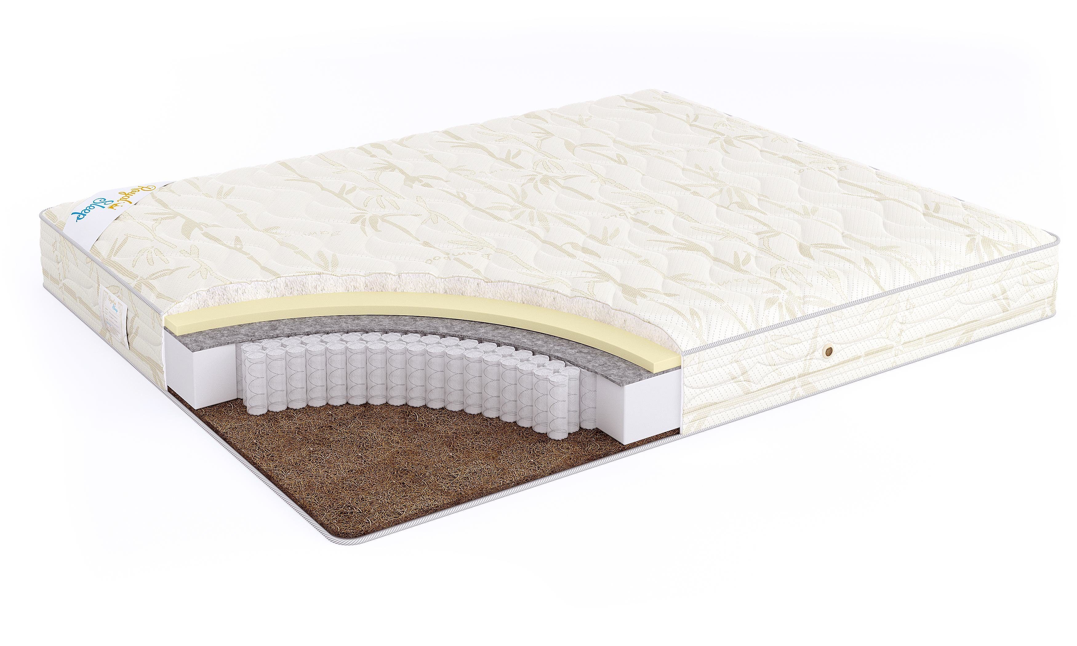Натуральное кокосовое волокно, пропитанное латексом, придает жесткость матрасу.